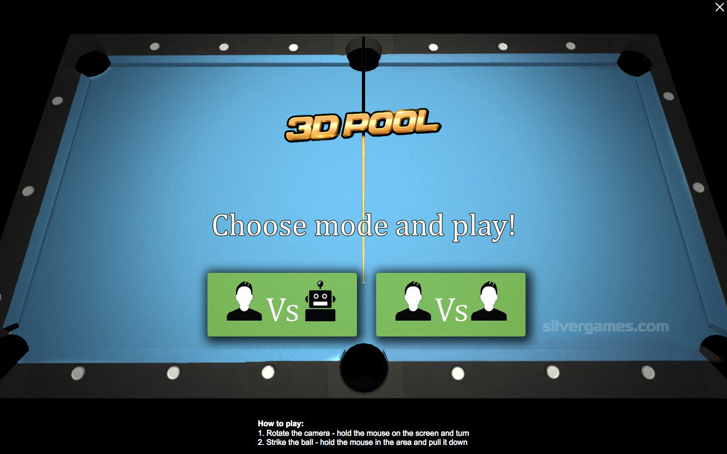 🎱 3D Pool 是一款适合 2 位玩家的逼真的台球游戏,您可以在 Silvergames.com 上免费在线玩。您可以向朋友发起一场 8 球台球比赛,或者自己对着电脑练习。只需开始一场比赛,不断将条纹或纯色球击入洞中,以黑色 8 号球结束即可获胜。
