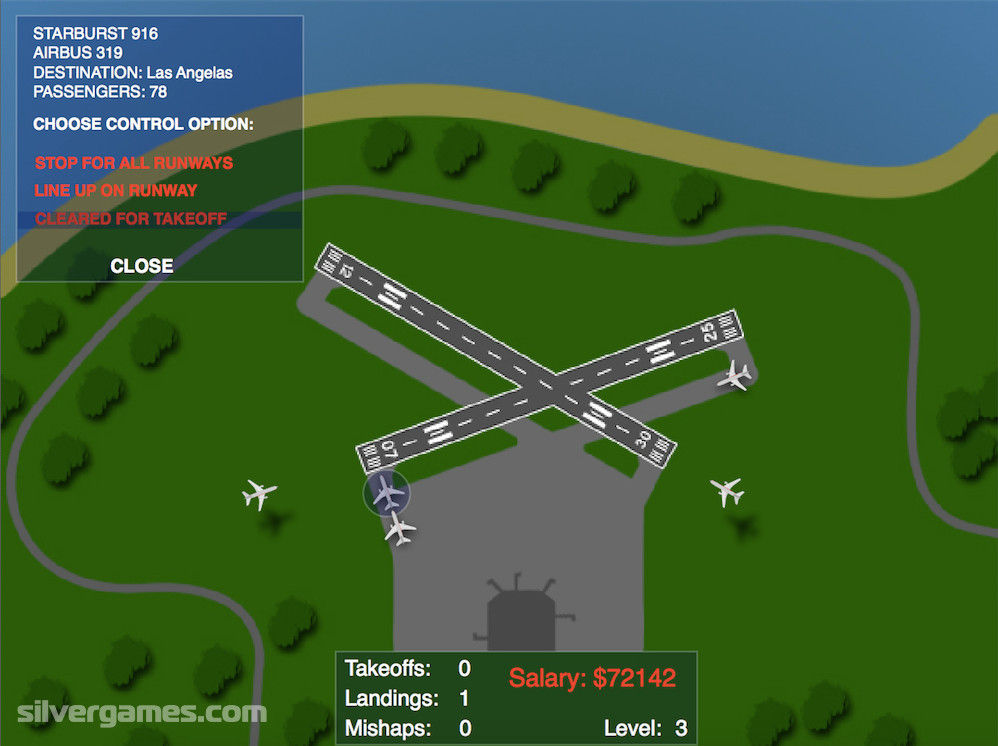 🛫 Airport Madness 是一款令人上瘾的空中交通管制游戏。您负责机场管理,因此您必须控制所有起飞和降落。当心机场周围的任何疯狂行动,避免撞车。一旦飞机接近机场,您可以清除它以便着陆,或者告诉它在机场周围再飞一圈,这样您就有时间清理着陆跑道以进行着陆。单击每架飞机以调出其控制面板。抵达者自行降落,无需您输入任何信息。