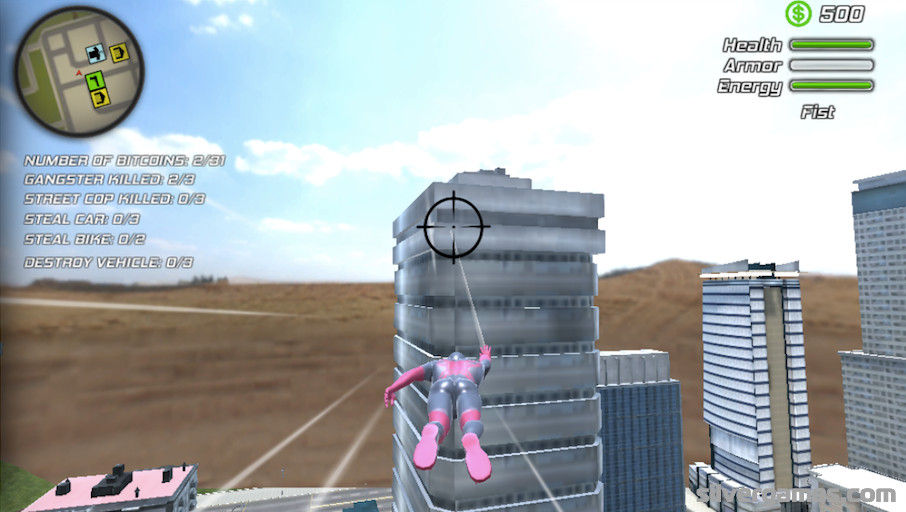 Amazing Rope Hero 是一款引人入胜的第三人称开放世界游戏,讲述了一种奇怪的超级英雄类型,其力量类似于蜘蛛侠,您可以在 Silvergames.com 上免费在线玩。进入这个混乱的罪恶之城并控制这个蒙面人物来对抗试图阻止你的罪犯和警察。完成任务,例如收集比特币或偷窃不同类型的车辆,并使用您的特殊能力爬上建筑物或用从您的眼睛中射出的超级致命射线杀死人。革命已经开始,公民的命运掌握在你的手中。