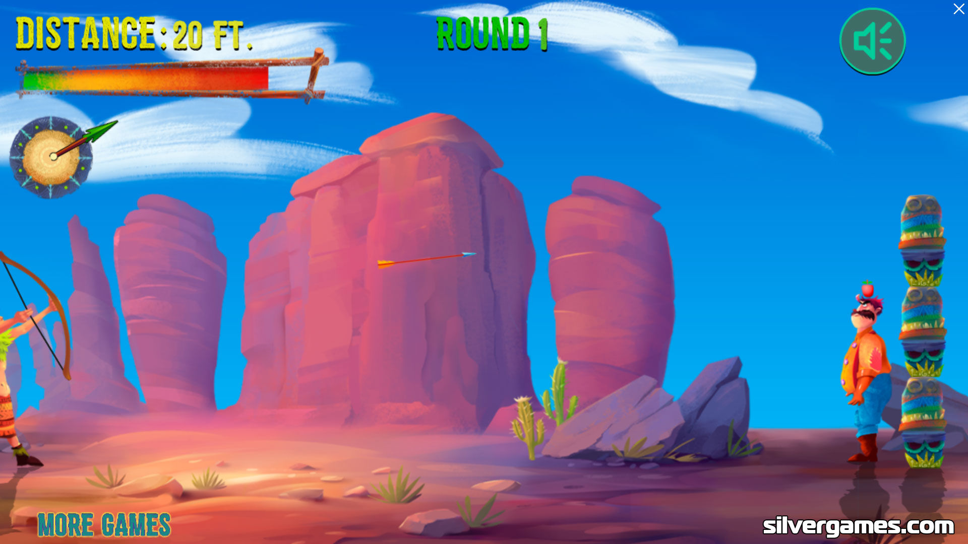 在游戏中,玩家扮演弓箭手,负责从勇敢的志愿者头上射出苹果。每个级别都会呈现一个逐渐困难的场景,随着弓箭手和目标之间的距离不断增加,射击变得越来越具有挑战性。目标是击中苹果而不伤害佩戴它的人。