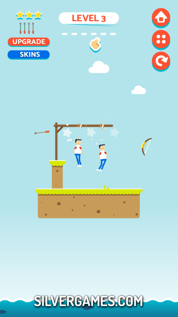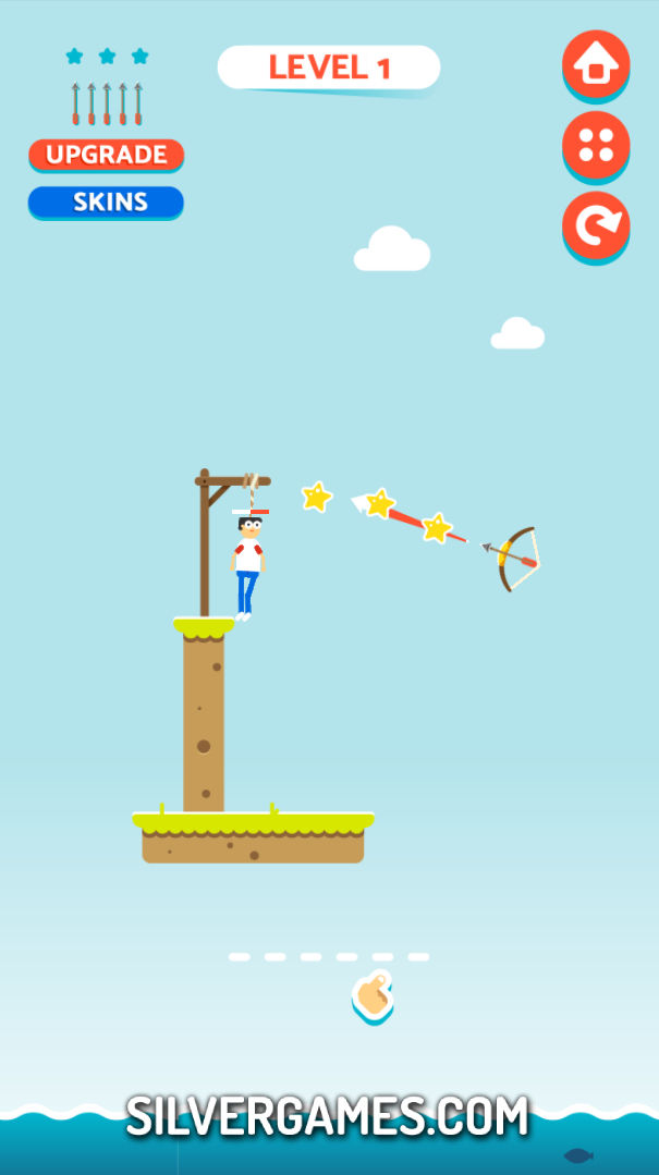 在 Arrow Shooter 中,每次射击的方向和力量将是成功的关键。在尝试解救角色时,尽量不要击中他们,否则您将输掉这一关。尽最大努力收集每一关的所有三颗星,这样您就可以为上吊的人购买很酷的升级和皮肤。有很多关卡等着您像专业弓箭手一样解决,所以现在就开始并以 3 颗星完成所有关卡。尽情享受吧!