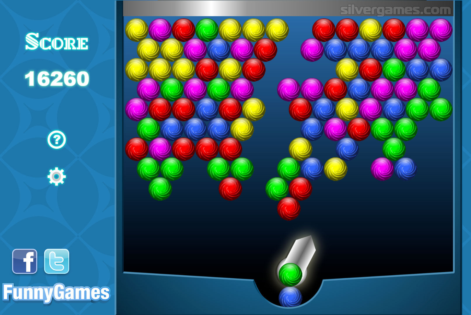在Bouncing Balls 中,您的目标是通过向球发射相同颜色的球来消除屏幕上的所有球。当您创建一组三个或更多相同颜色的球时,它们会爆裂,为您赢得积分并清理该区域。挑战在于仔细瞄准你的击球并计划你的动作以产生连锁反应并在一次击球中清除尽可能多的球。