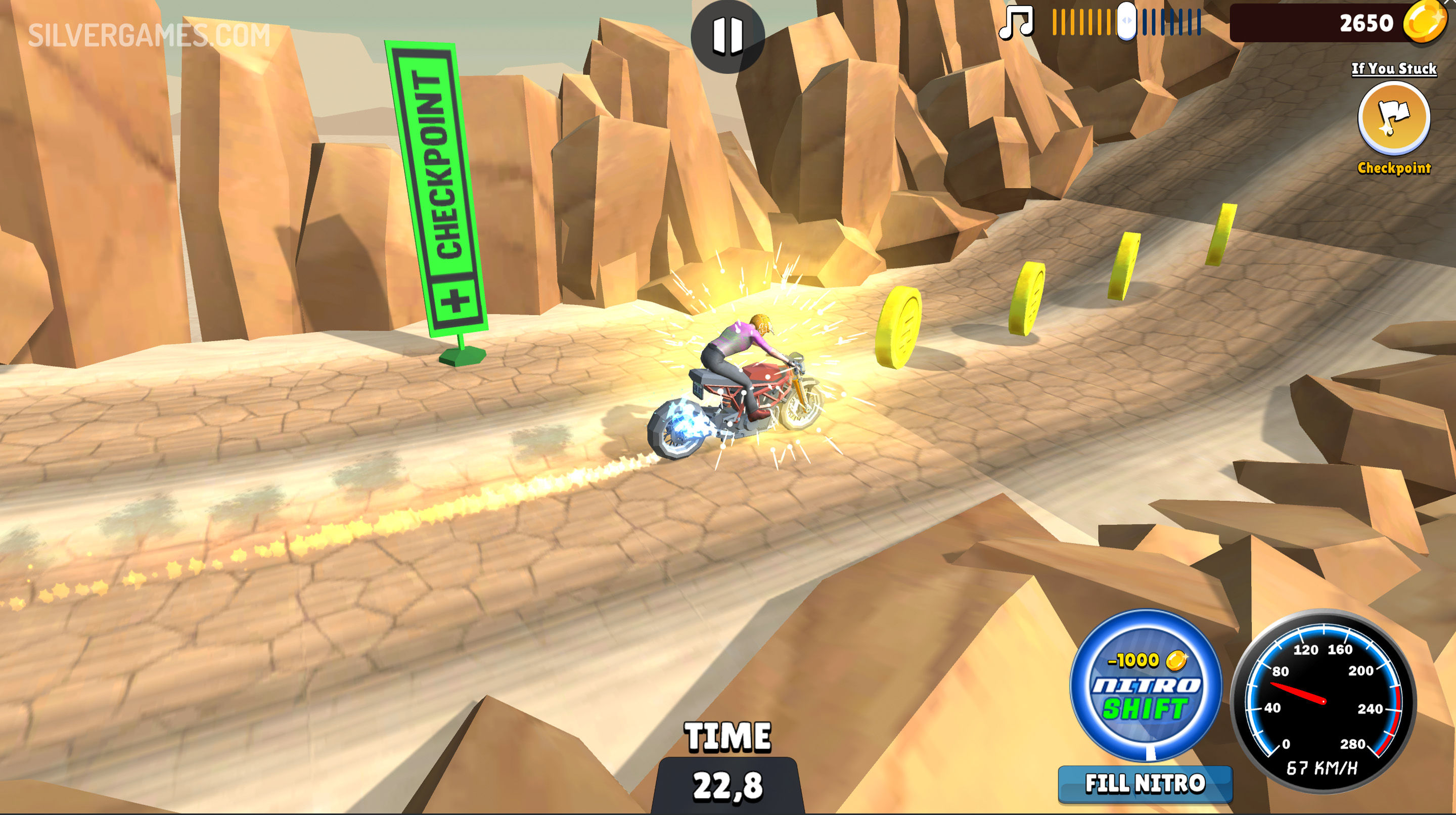 在每个关卡中,您都将面临一系列新挑战,需要快速反应和精确计时才能完成。表演大胆的特技,如翻转、前轮离地和跳高,以打动观众并获得积分。这款游戏非常适合追求刺激和赛车爱好者。您能征服每条赛道、掌握每项特技并一路获胜吗?戴上头盔,准备好享受Cartoon Moto Stunt带来的高能量乐趣吧,这是一款 Silvergames.com 上的免费在线游戏!