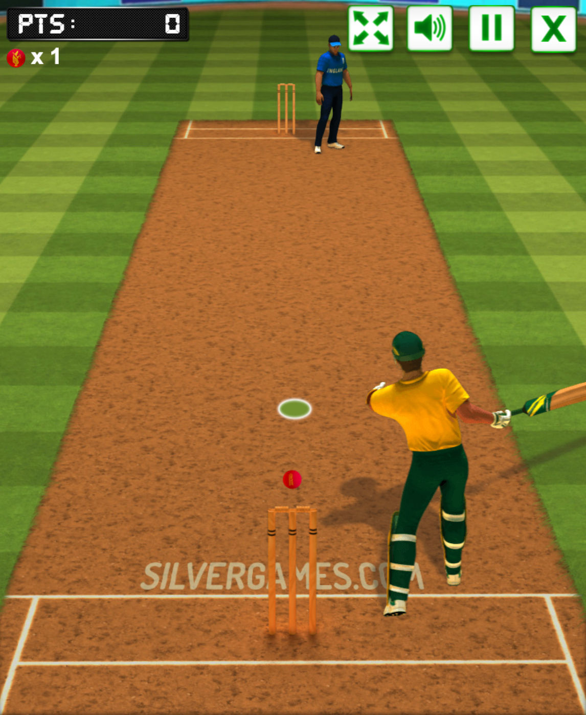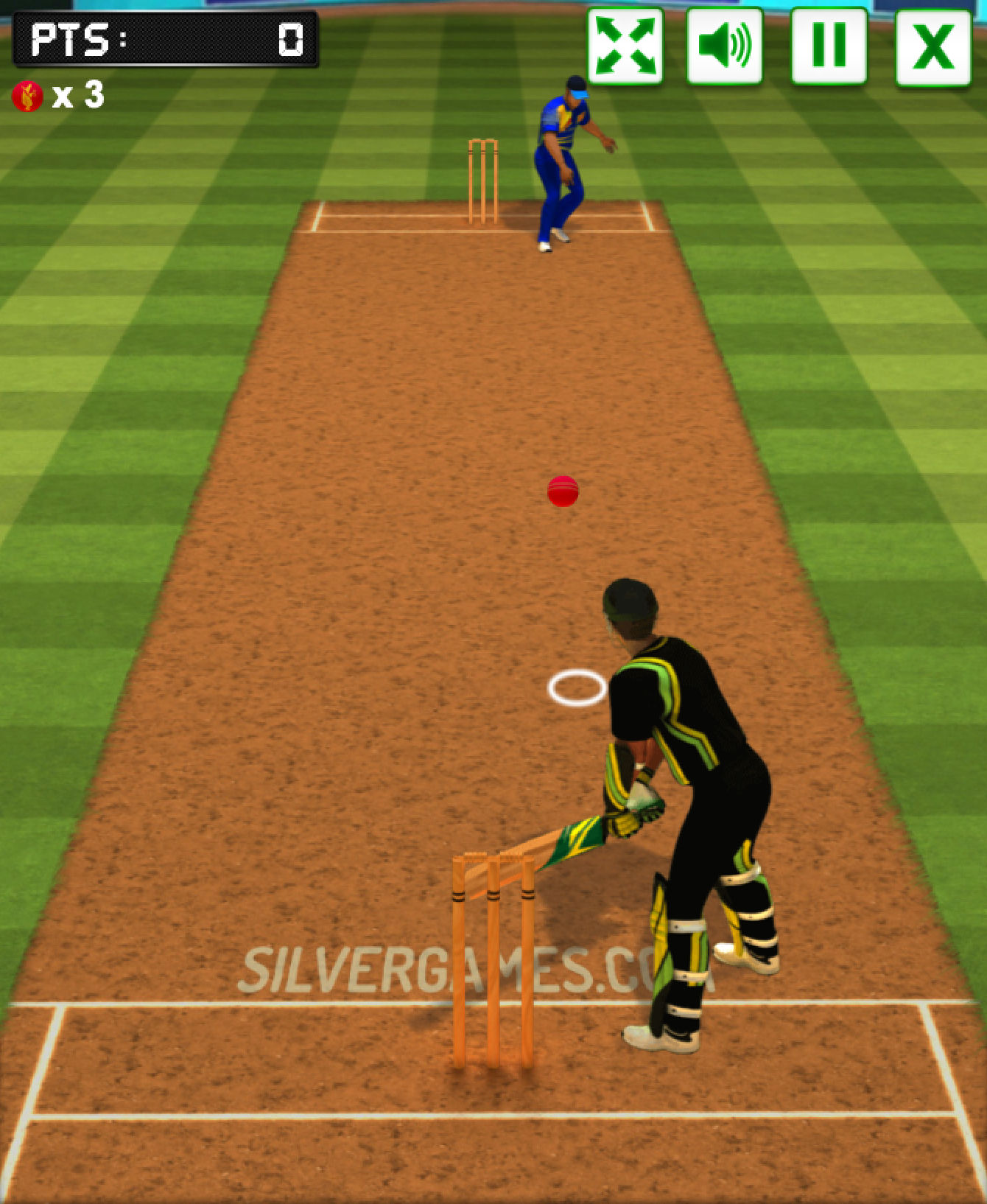 在板球比赛中,每支球队都必须击倒对方球队的球瓶。为了避免这种情况,对方球队必须使用球棒击球。你的角色将是击球手,不惜一切代价保护球瓶,所以你必须像真正的专业人士一样击出每一次击球。如果投球手成功击中球瓶 3 次,您就输了。尝试在你的别针被击倒之前设定一个无与伦比的高分。玩 板球击球手 玩得开心,这是 Silvergames.com 上的免费在线游戏!