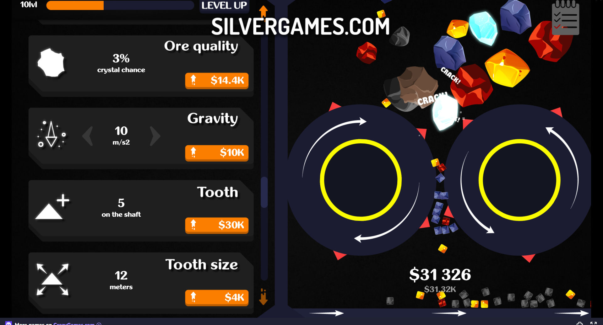 Crusher Clicker 是一款有趣且令人上瘾的放置类游戏,您必须粉碎所有类型的石头以出售它们并赚钱。准备好用 Silvergames.com 上的这款免费在线游戏摧毁您的鼠标吧。当石头落在旋转的破碎机之间时,您的任务是单击石头以更快地将其粉碎。当您赚到足够的钱时,您可以升级机器以更快地完成自动工作。