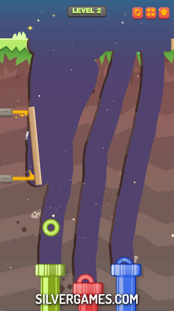 Dig This! 是一款有趣且令人上瘾的重力游戏,为玩家提供迷人的基于物理的游戏体验,他们必须采用策略性挖掘来解决一系列具有挑战性的谜题。这款免费在线游戏由 Silvergames.com 推出,邀请玩家踏上 30 个独特关卡的旅程,每个关卡都有自己的障碍和挑战。目标很简单:挖掘地面以创建路径,让彩色环到达相应的管道。