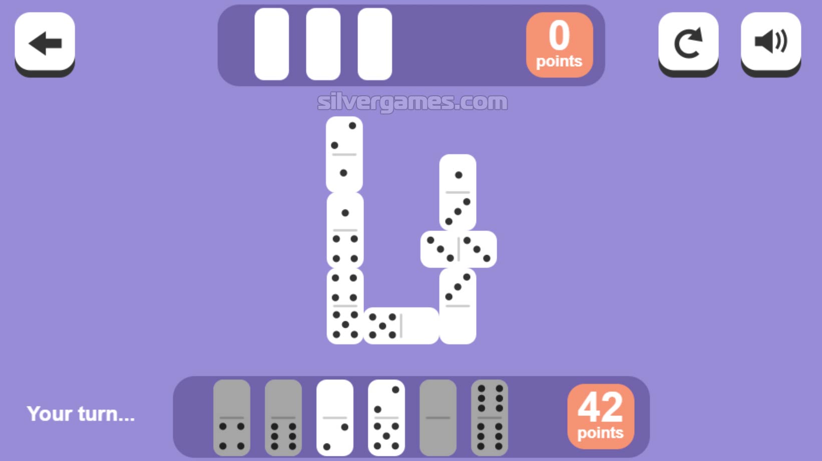 游戏将继续进行,直到一名玩家玩完所有的多米诺骨牌或无法再进行任何移动为止。如果玩家无法移动,他们必须从墓地中抽取一块新的棋子。首先玩完所有棋子或在游戏结束时剩余棋子最少的玩家为获胜者。 多米诺骨牌是一款需要策略、观察和仔细计划的游戏。它可以与 2 至 4 名玩家一起玩,适合所有年龄段。无论您是初学者还是经验丰富的玩家,多米诺骨牌都能为您带来无尽的乐趣和挑战。在 Silvergames.com 上在线玩骨牌,并与来自世界各地的对手测试你的技能!