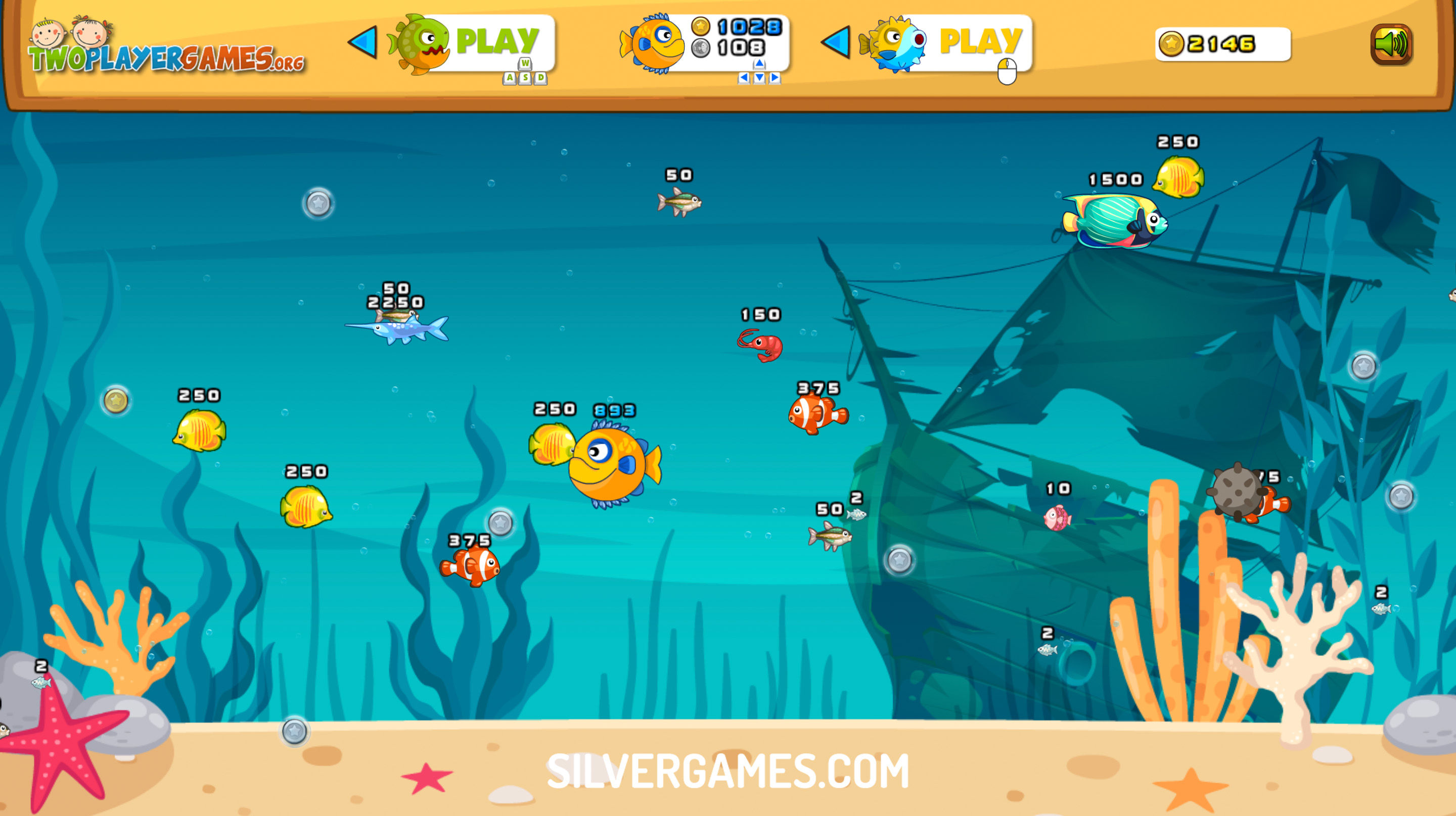 每次你面临挑战性的情况并被吃掉时,别担心,你会获得金币作为奖励。这些黄金可以用来为您的鱼购买新的皮肤,为您的水下旅程增添一抹个性化。此外,你可以选择与最多两名朋友组队,一起竞争成为海里最大的鱼。测试你的技能和策略,努力主宰海洋并获得最强大鱼类的称号。在 Silvergames.com 上免费在线玩“吃鱼,变大”非常有趣!