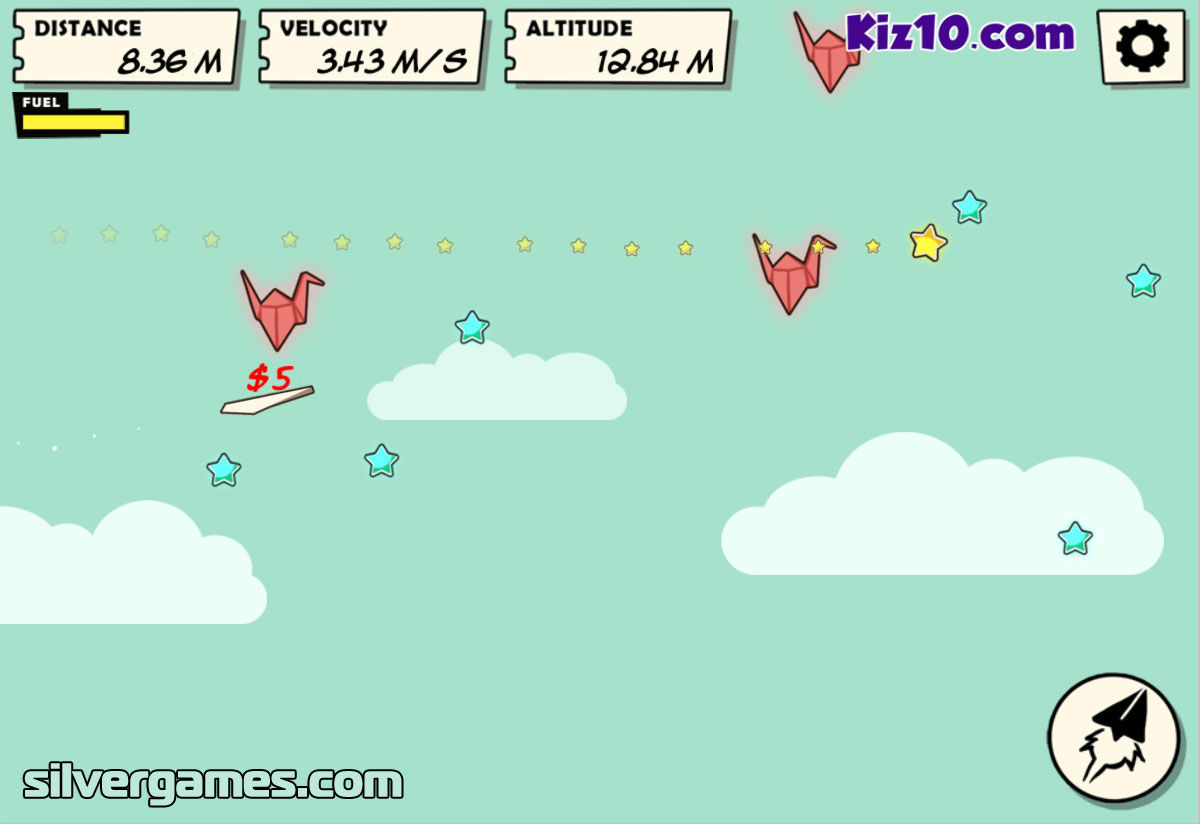 Flight是一款很酷的在线纸飞机飞行模拟游戏。没有什么比在空中飞翔更好的了。不是每个人都有拥有私人飞机的奢侈。在这个免费的飞行游戏中,您可以捡起一架简单的纸飞机并将其扔过屏幕,并看着它在慢慢向地面下降时收集星星。每次投掷,您都会离目的地更近一点,沿途购买升级和改进以及您收集的星星。