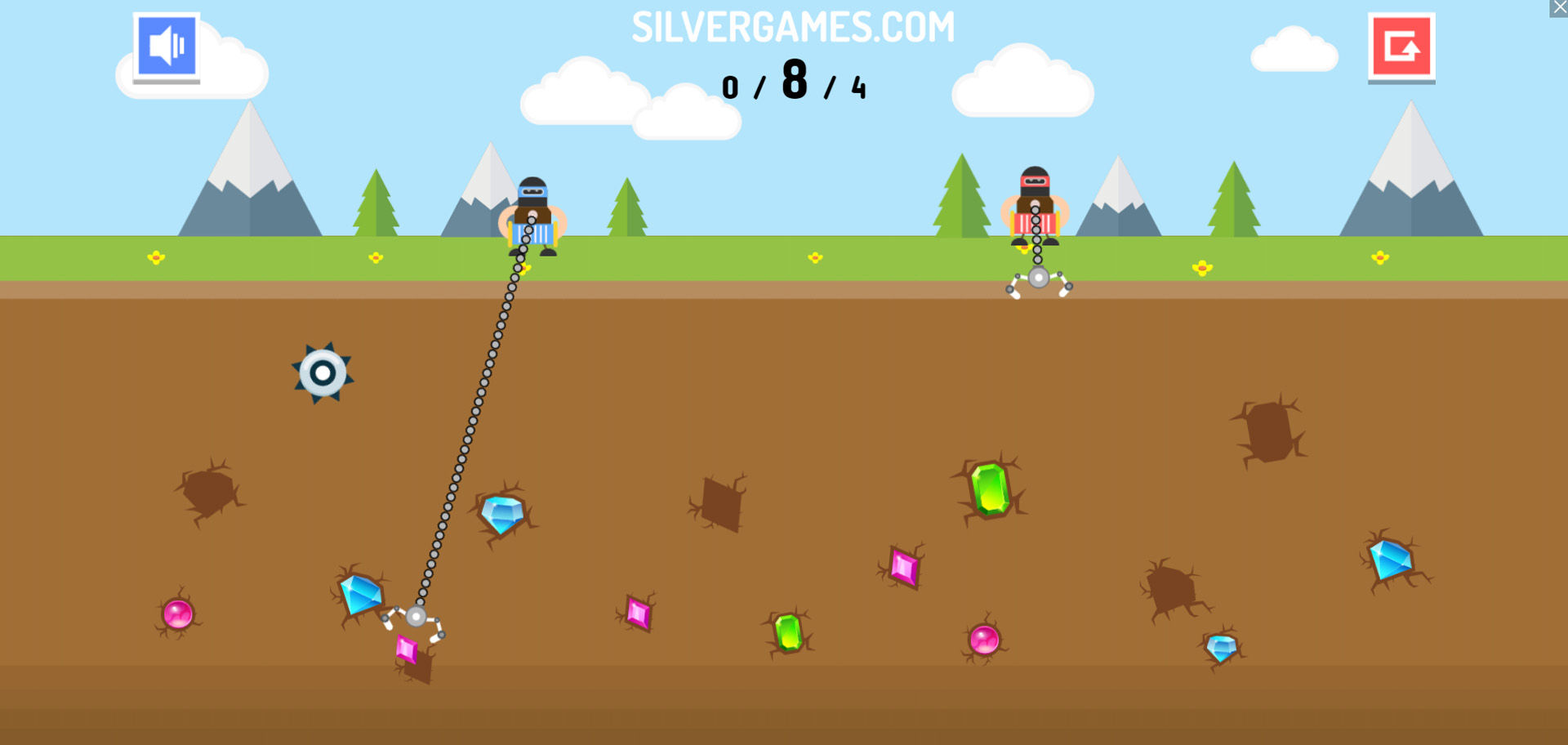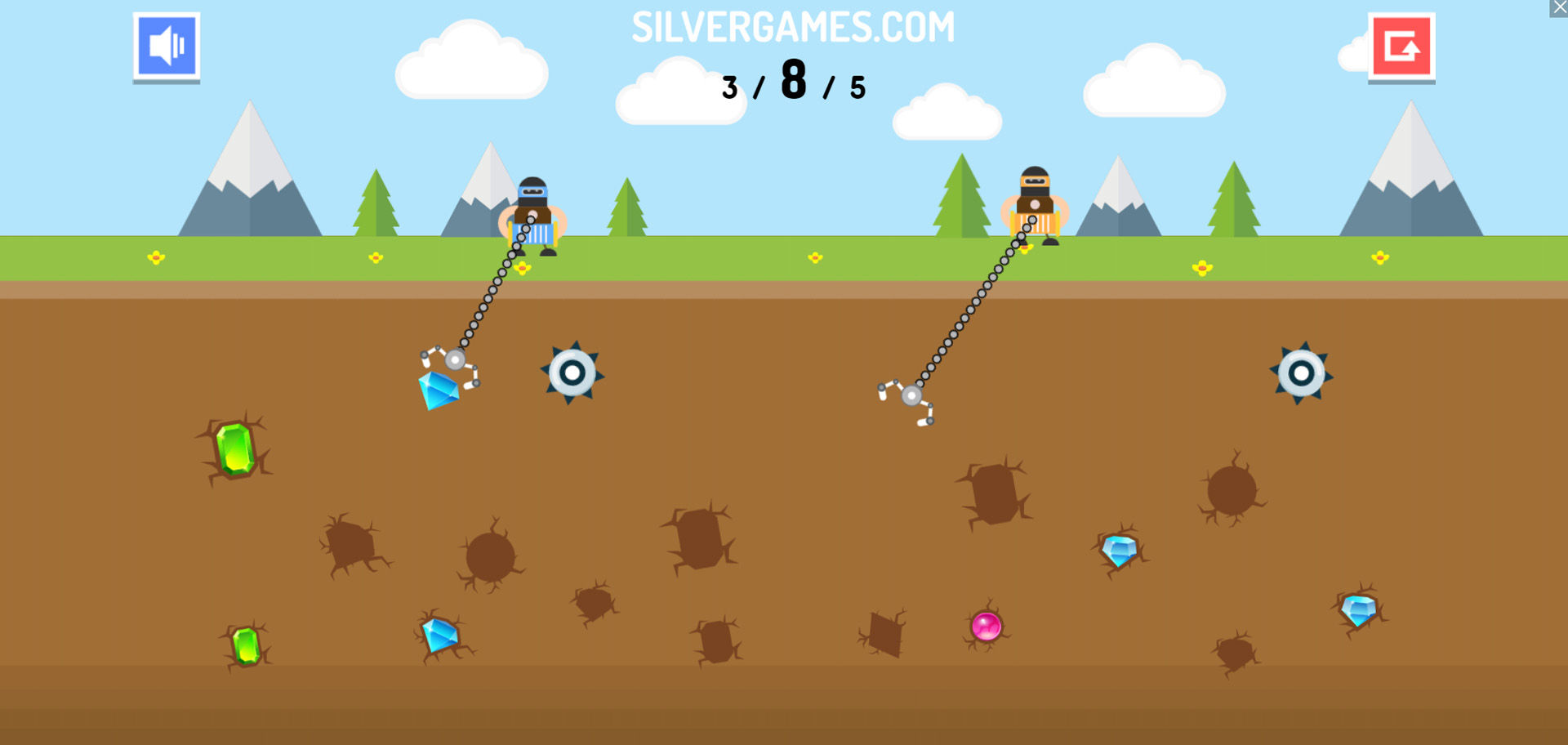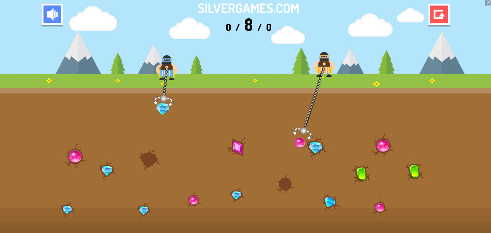 黄金矿工 - 双人 是一款具有竞争力的采矿游戏,您可以与朋友对决或挑战 CPU 来证明您的钻石开采霸主地位。无论您是单独玩还是与朋友在同一台计算机上玩,您的目标都是收集比对手更多的钻石。每个玩家控制一个机械抓爪,在地下隐藏的宝藏上方来回摆动。把握好您的动作时机,在准确的时刻放下抓取器以抓住有价值的宝石和贵金属,在对手之前将它们拉到地面。由于可开采的钻石数量有限,战略时机和精确瞄准对于胜利至关重要。