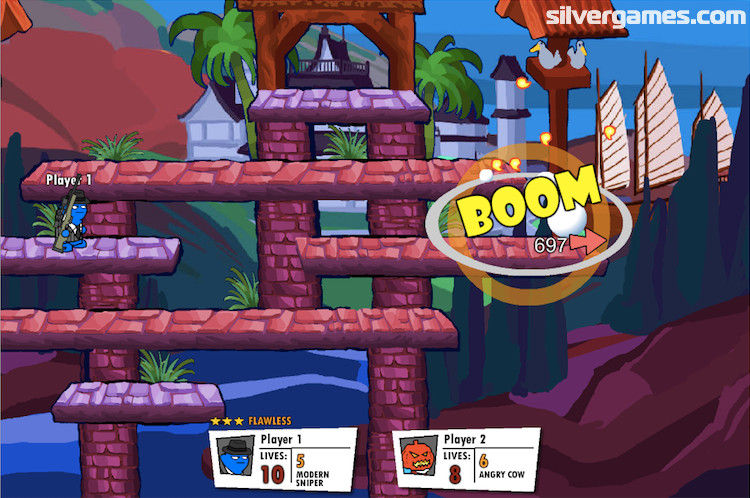 就像它的前身一样,你的任务非常明确:将你的对手从平台上炸下来,不要指望他们会站着不动让你轻松。在这个充满动作的竞技场中,你需要闪电般的反应速度、狡猾的策略和不可动摇的决心来获得胜利。这是一场只有最强者才能生存的对决。