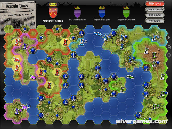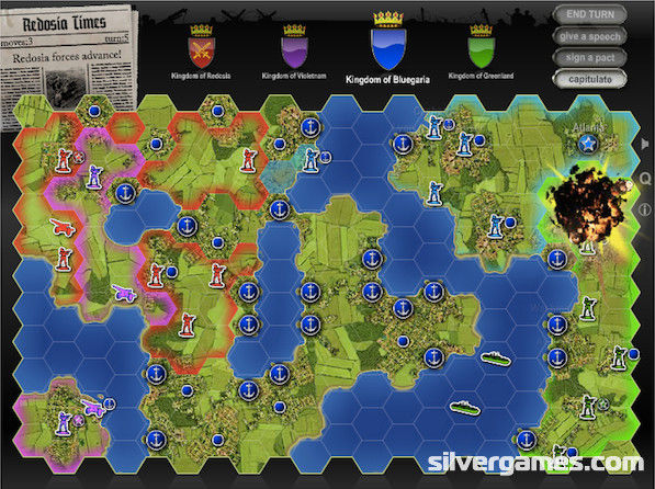 Hex Empire 重温这段美好时光!这款游戏将重振您对含泪放弃游戏的热爱。通过征服其他帝国并保卫自己的帝国来争夺地图霸权。每回合使用您的 5 个命令将您的单位移动最多 2 个方格。