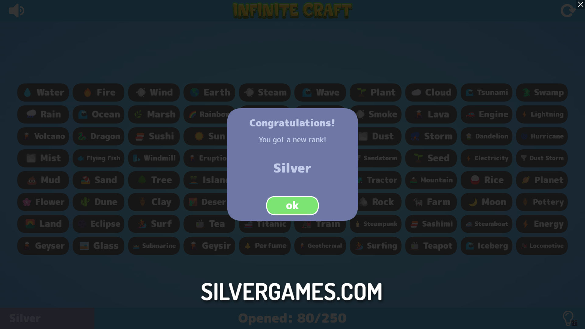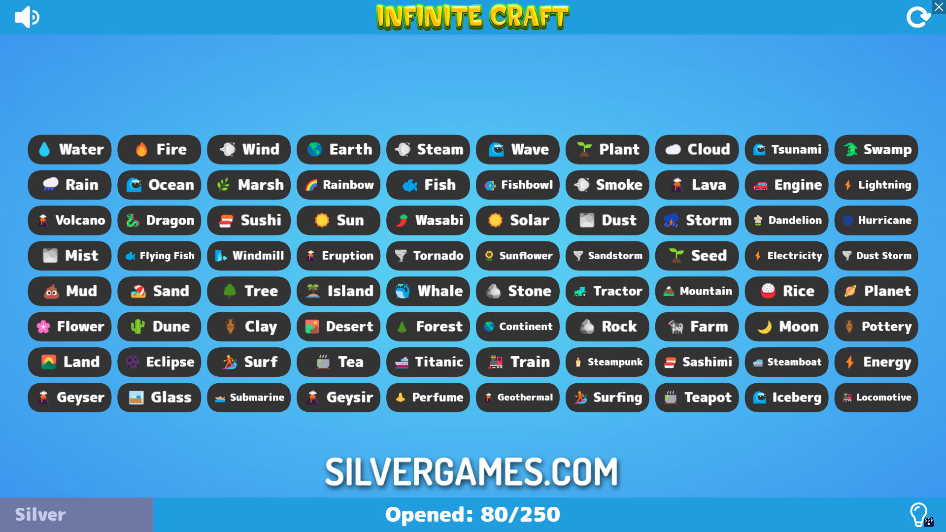 Infinite Craft 是一款有趣的元素组合游戏,您只需组合两种不同的元素,即可创建几乎所有存在的事物。您可以在 Silvergames.com 在线免费玩这款游戏。如果将火和水混合在一起会发生什么?您将得到蒸汽。如果将火和石头混合在一起会发生什么?您将得到熔岩。风将石头变成沙子,沙子与火混合会变成玻璃。