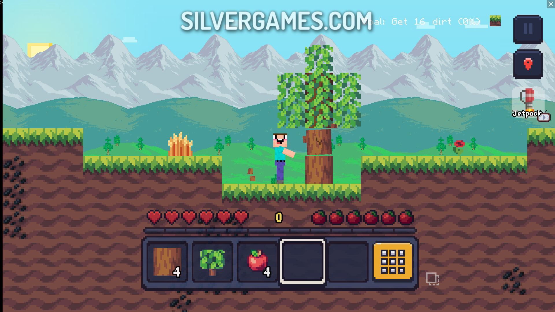 Mine 2D Survival Herobrine 太阳落山后,僵尸和骷髅战士就会来找您。您拥有建造堡垒、武器、盔甲等所需的一切。您只需开始寻找所需的所有材料,并足够聪明地将它们组合起来。记得喂饱自己!为此,您可以采摘苹果、西瓜,甚至可以烤面包,只要您创建了一个烤箱。在这个有趣的游戏中,各种可能性都在等着您。尽情享受吧!