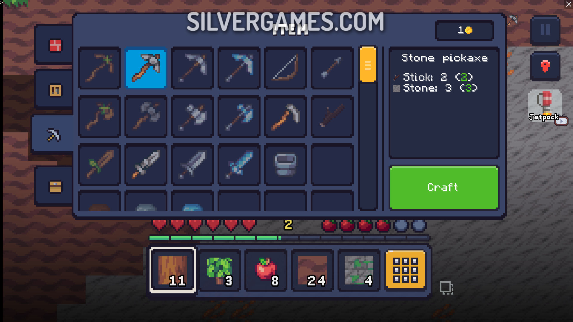 Mine 2D Survival Herobrine 是一款有趣的 2D 生存 Minecraft 游戏,您必须收集资源来保护自己免受各种危险。在 Silvergames.com 上这款引人入胜的免费在线游戏中,您一开始是无助的菜鸟,身处一片白天看似天堂,但夜晚却变得相当恐怖的土地上。您最好开始收集木材、石头、木棍等来生存。