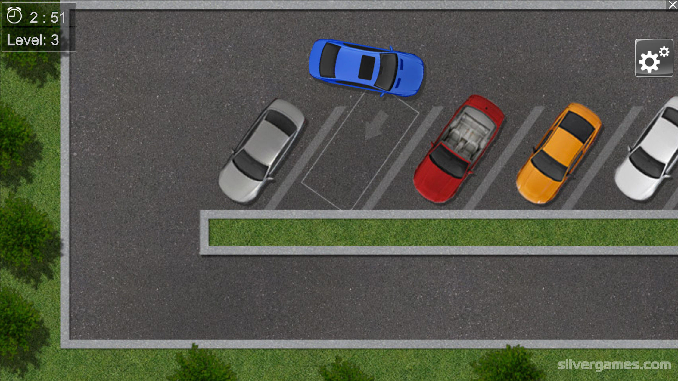 停车场是一款超级有趣的停车游戏,您可以在 Silvergames.com 上免费在线玩。游戏的任务是将汽车停在指定位置,不撞到任何汽车或障碍物。在时间用完之前尽快停车。用方向键控制汽车。