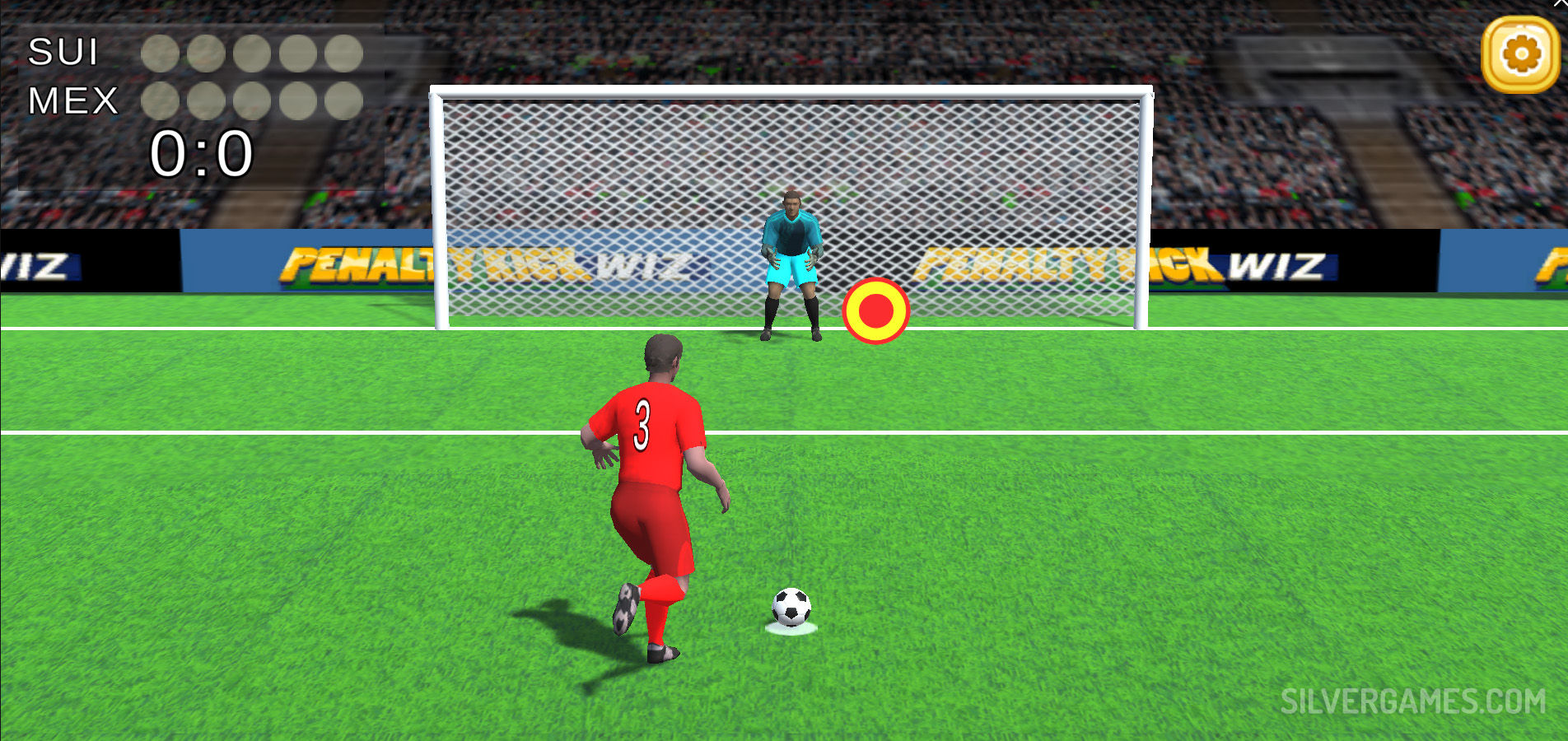 Penalty Kick Wiz提供有趣的运动体验,让您的点球技巧得到终极考验!踏上虚拟球场,选择你最喜欢的国家,带领他们在世界杯上取得胜利。凭借其迷人的 3D 图形和身临其境的游戏玩法,这款游戏提供了真正点球大战的所有刺激。足球爱好者都知道,点球是决定比赛胜负的时刻。在Penalty Kick Wiz中,您将体验到在这些关键时刻同时扮演进攻者和防守者角色的肾上腺素激增。无论您的目标是打进制胜一球,还是奋力扑救,每一秒都至关重要。