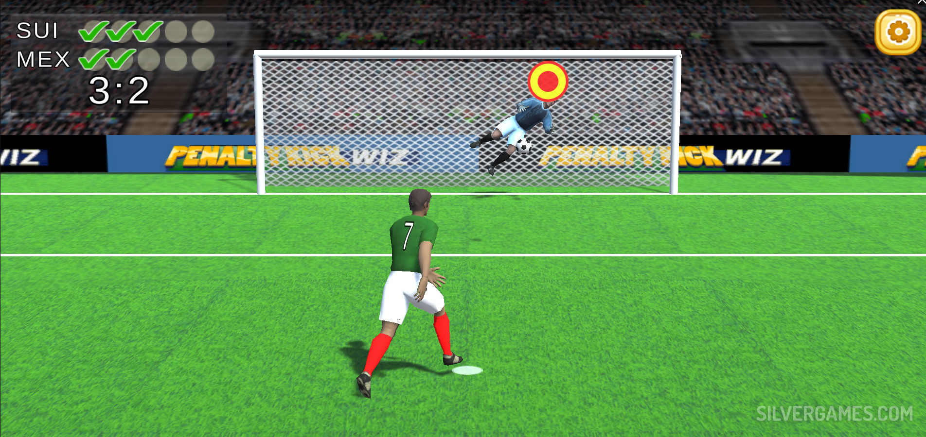 挑战自己,连续击败尽可能多的球队,赢得奖杯,并在足球历史上铭刻你的名字。无论您是经验丰富的足球迷还是休闲游戏玩家,Silvergames.com 上的Penalty Kick Wiz都能保证您享受数小时的惊心动魄的游戏体验和紧张刺激的体验。所以,系好你的靴子,走向罚球点,向世界展示你的实力!