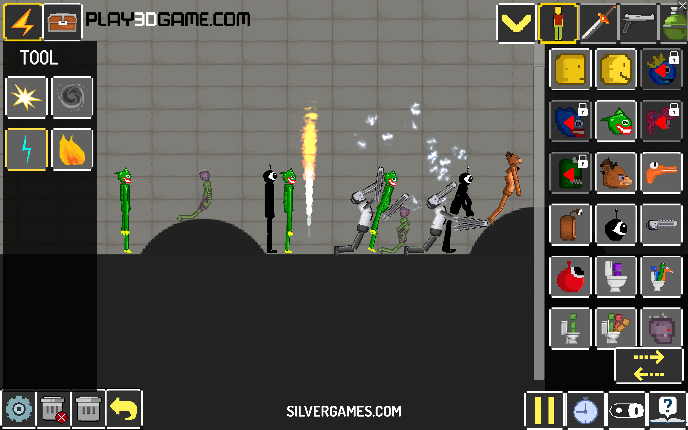 该游戏提供了广泛的工具和设备来实现您想要的结果。从枪支和爆炸物到医疗设备,甚至超自然力量,你都有一个武器库可供你使用。尝试不同的组合,创造连锁反应,或者在操纵布娃娃和环境时尽情发挥您的想象力。