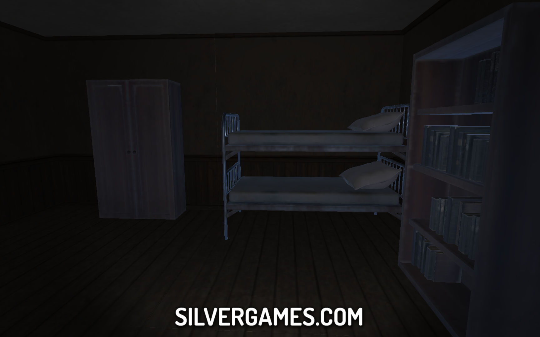 控制:鼠标 = 查看,WASD = 移动,E = 互动,Q = 离开藏身之处,Shift = 奔跑