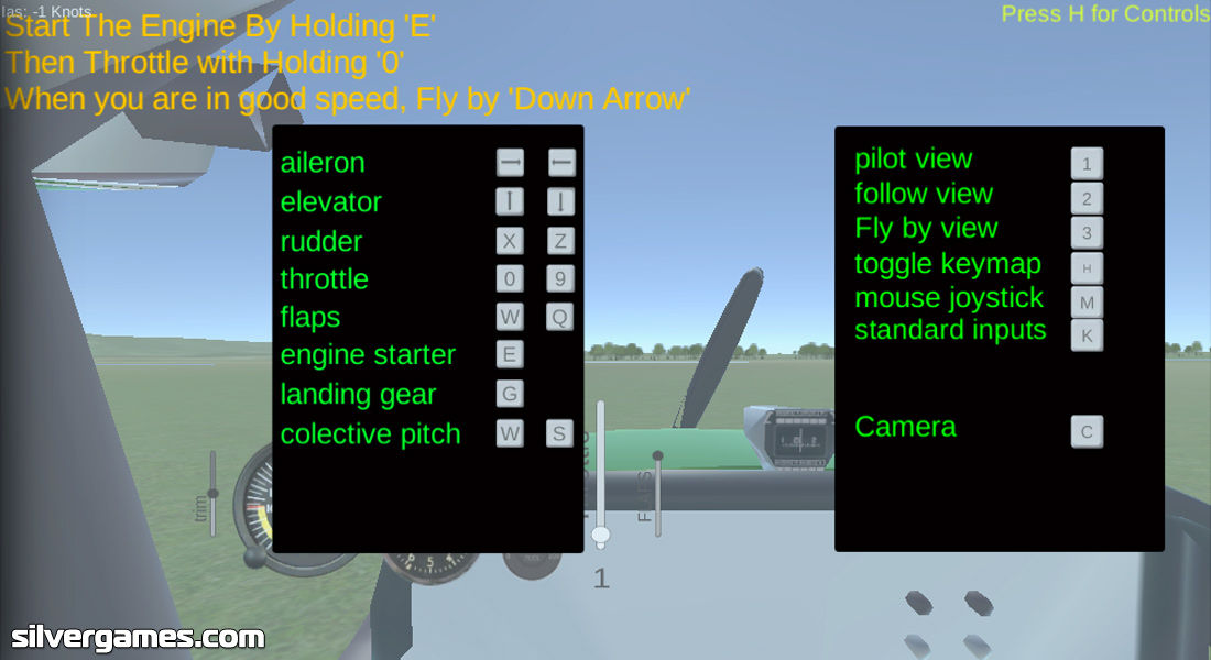 控制:E = 发动机启动,0 / 9 = 发动机功率,箭头 = 方向。按 H 进行更详细的控制。