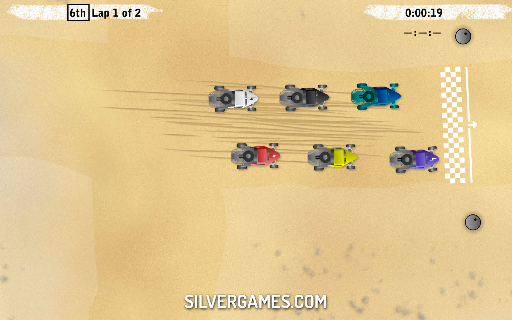 “沙暴”是一款壮观的沙漠拉力赛游戏,具有逼真的驾驶物理效果。在这款引人入胜的自上而下的沙轨赛车游戏中,玩家将坐上强大的沙轨驾驶座,沙轨是专门为精确和快速地穿越危险的沙地而设计的车辆。沙暴的自上而下的视角让人想起经典的街机游戏,它让人回想起游戏的黄金时代,同时提供现代的刺激和兴奋。当然,您可以在 Silvergames.com 上免费在线玩这款游戏。