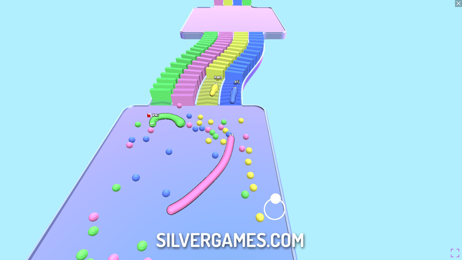 Snake Race是一款有趣的赛车游戏,你必须喂食自己来成长,这样你才能到达终点线。Silvergames.com 上的这款免费在线游戏中的蛇想要建造一座巨大的城堡。要做到这一点,它们必须赢得比赛,但由于个头太小,它们无法突破那些疯狂赛道上的障碍。你认为你能帮助你的小蛇吗?