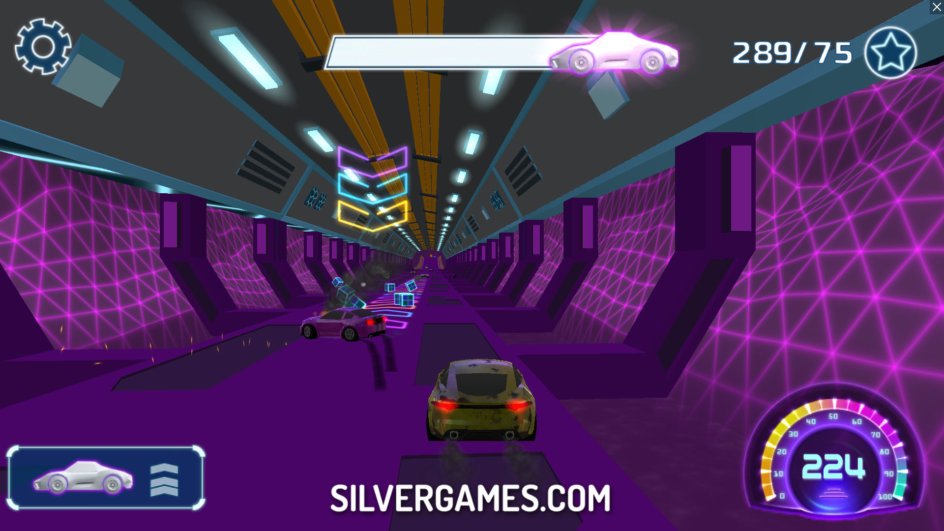 Speed Master 是一款疯狂的赛车游戏,您可以在充满障碍物和致命陷阱的赛道上竞争。您可以在 Silvergames.com 在线免费玩这款游戏。坐上您迷人的赛车,踩下油门,将 CPU 对手甩在身后,但要准备好您的反应能力,以避开通往胜利的路上的各种危险。