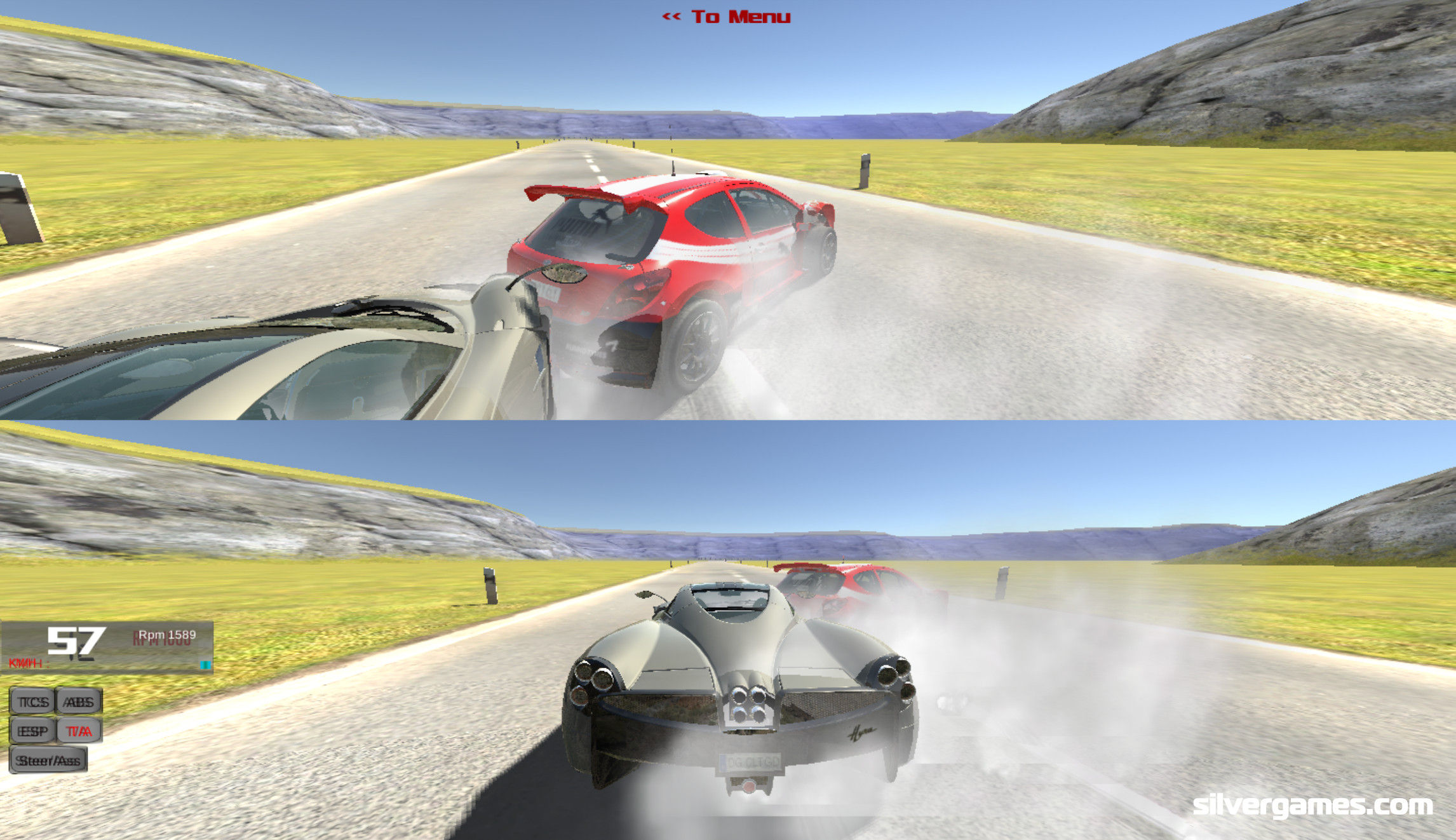 控制:箭头/WASD = 驱动,空格键 = 手刹,R = 维修。 2 玩家模式:玩家 1 = ESDF,玩家 2 = 箭头