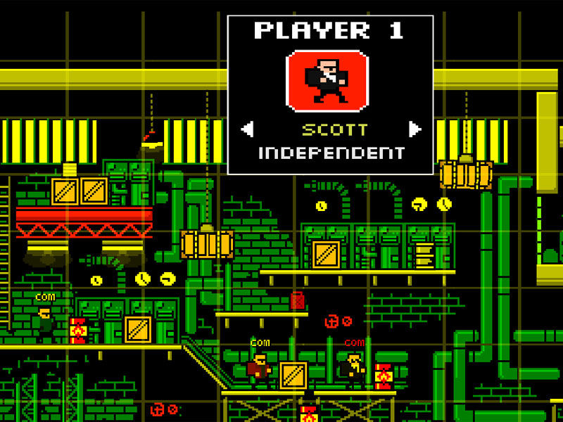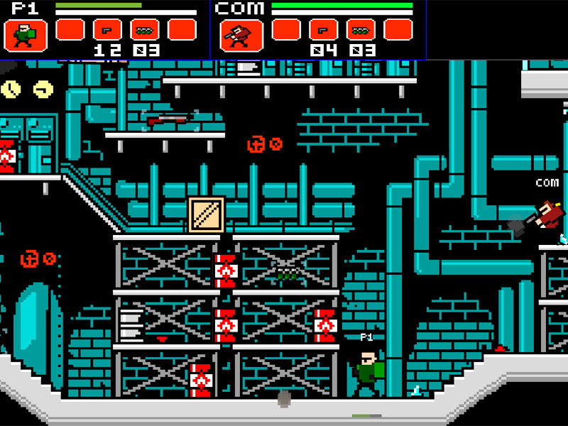 在这款游戏中,你可以与人工智能控制的敌人对战,也可以在本地多人游戏模式中挑战你的朋友。目标很简单:消灭你的对手并成为最后一名。你将拥有大量武器和工具可供你使用,从枪支和手榴弹到近战武器和环境物体。您可以从种类繁多的像素英雄中选择您最喜欢的角色。选择一个阶段和竞技场中的战士数量,然后按空格键开始战斗。踢一些屁股,别让他们打你!一段时间后,您将能够在每个阶段收集不同类型的武器,例如突击步枪或火焰喷射器。