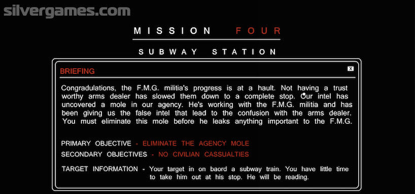 战略性地思考,不要草率行事,否则你会在你开始之前就失败了。在火车上阅读时击中目标,干掉机构内奸或大使馆官员。有时您必须快速行动以防止您的目标逃脱。你准备好迎接这场血腥的射击冒险了吗?在 Silvergames.com 上免费在线查找并享受 Tactical Assassin 的乐趣!