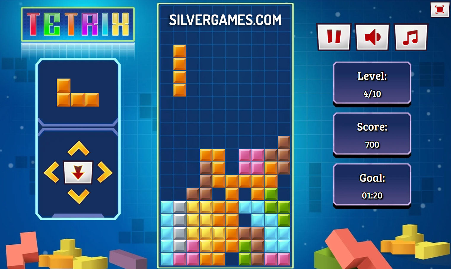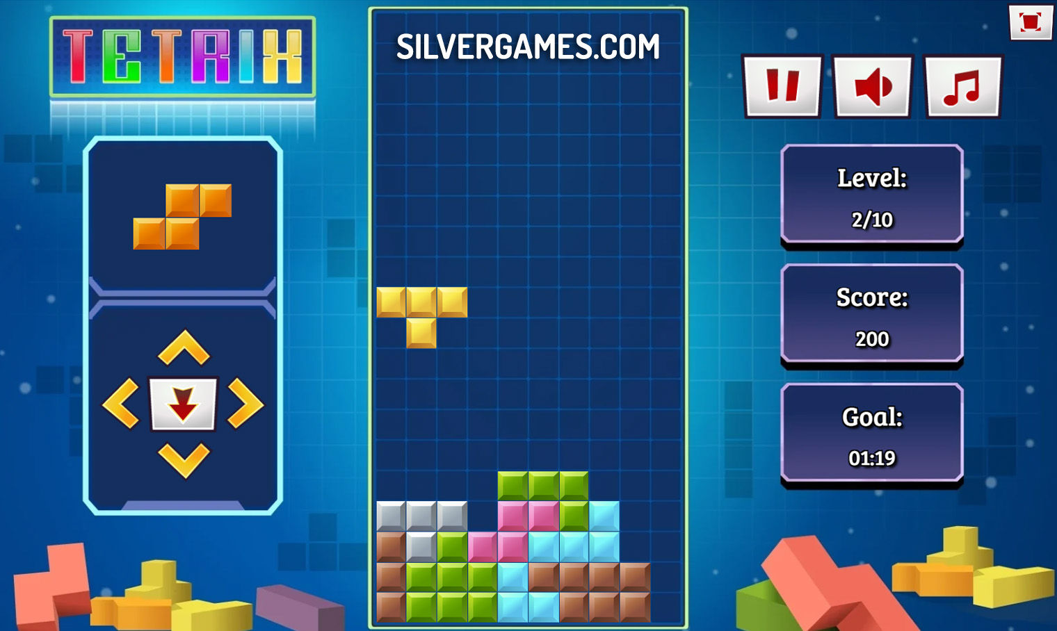 随着您的进步,尝试打破最高分,收集成就,并确保在排行榜上占有一席之地。游戏中有十个难度逐渐增加的激动人心的关卡,您需要敏锐的解谜技巧和明确的策略才能征服这个充满活力的谜题世界。您有能力成为最终的 Tetrix 冠军吗?现在就来了解一下,并在 Silvergames.com 上免费在线玩 Tetrix 吧!