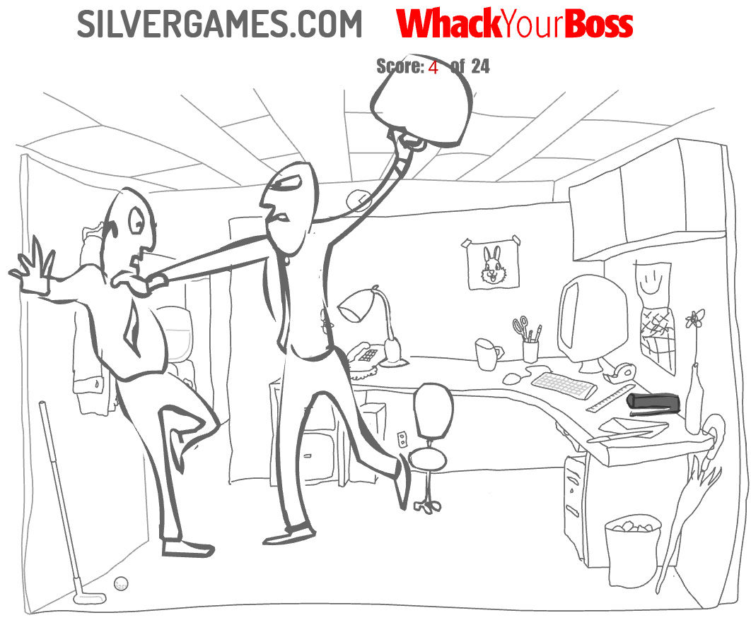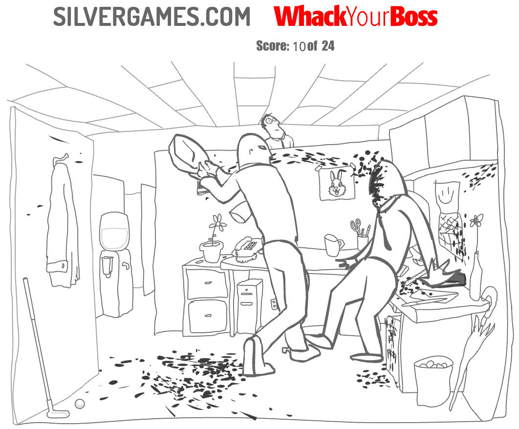 Whack Your Boss 是一款简单的打败老板游戏,带有黑暗和幽默感。隐藏在办公室隔间的简单绘图中,您可以找到 24 种不同的方式来打击您的老板。单击其中任何一个以触发不同的动画序列。您真正需要做的就是找到要单击的正确对象。一旦你这样做了,一个简短的动画就会在同一个隔间里展开。他们每个人都在殴打、战斗和杀死你的老板时专注于你。您沮丧的员工将如何回应主管居高临下的态度和令人沮丧的滴答声?您将在此处找到的所有动画都是围绕一个非常简单的想法构建的。如果你把压抑的怒火发泄到老板身上会怎样?答案以一个粗鲁但令人惊讶的暴力视频的形式出现,视频中一个人直接杀死了他的老板。每场 Boss 战都是对复仇和过度屠杀的疯狂血腥描绘。